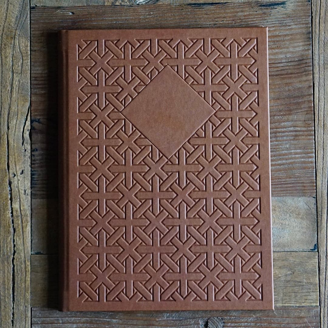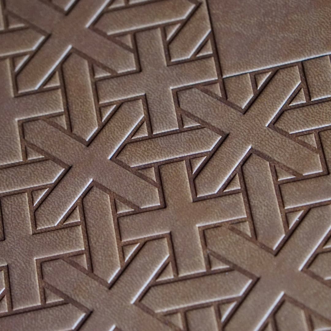 We have a small number of premade Brown Laxey menu covers, embossed in our popular geometric pattern with a 7.5cm square for personalisation if required. Finished with a concealed elastic cord for inserting your menu.