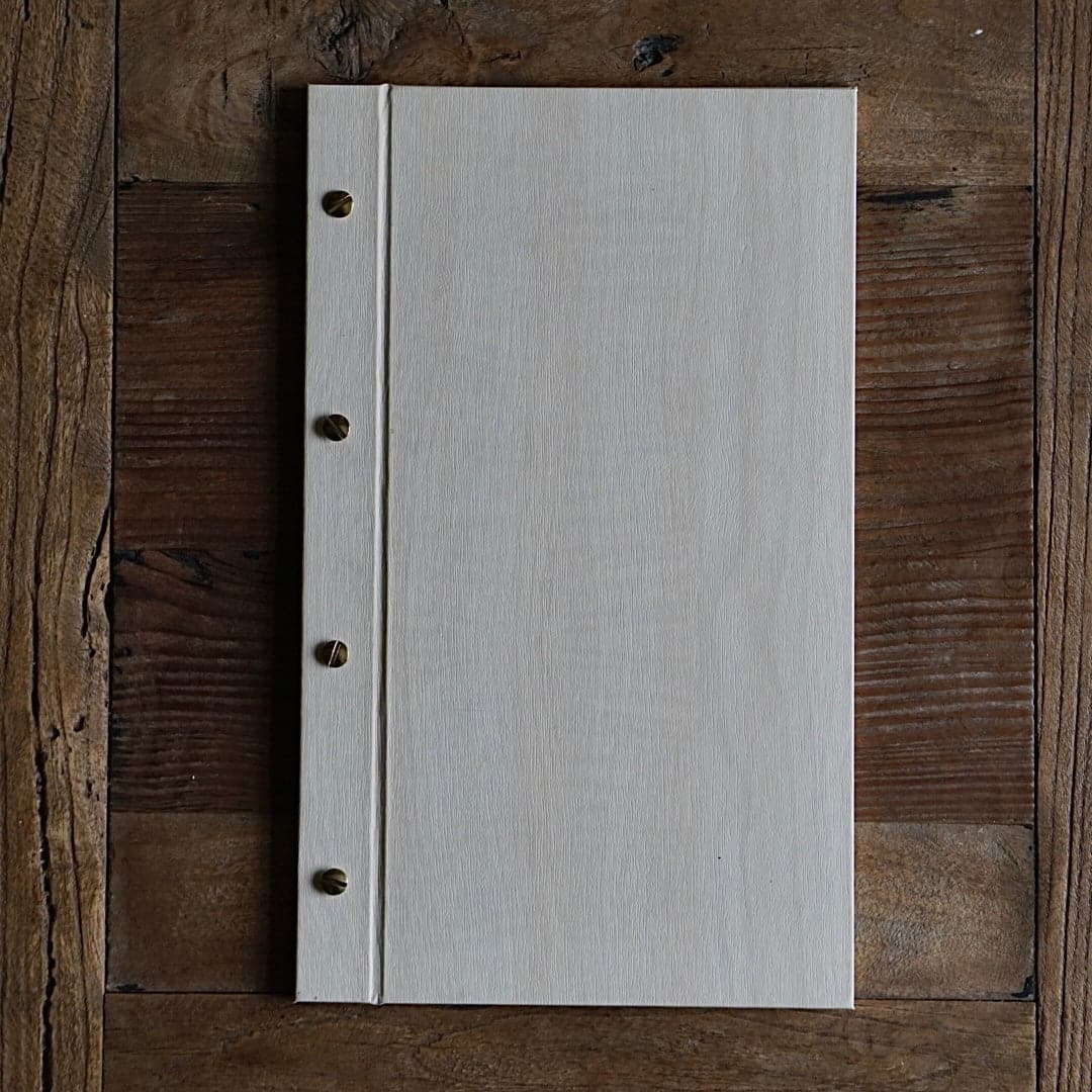 Finished with 4 brass screws, this size is designed to hold single sheets of paper or card 297mm (h) x 190mm (w). This item can be foil-blocked colour or blind embossed.