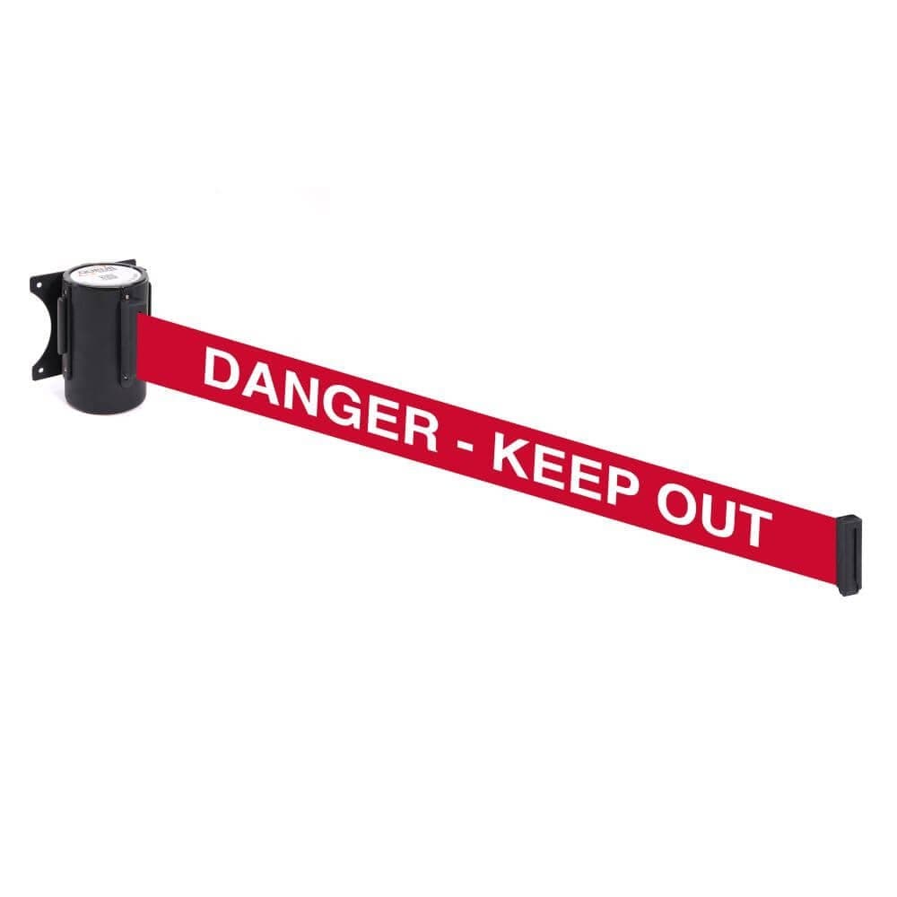 Our WallMaster wall mountable retractable queue control barriers are available with a choice of 3m and 3.9m belt lengths, 50mm wide, and come in a range of standard stock colours and print options. We offer a selection of belt ends and four mounting options to suit all requirements. All of our belts feature a universal belt end to suit all major brands of posts and stanchions.